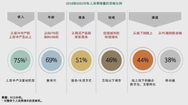 报告指出,崛起的上层中产和富裕阶层、新世代年轻人的全新消费习惯和线上线下全渠道的普及这三大新兴消费驱动力,将推动1.8万亿美元的消费增长。